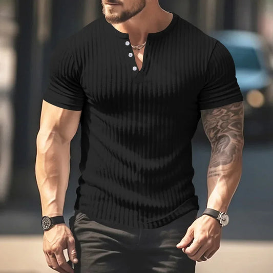 Fashion Europe and the United States solid color new summer short-sleeved foreign trade Henry shirt casual knitted T-shirt